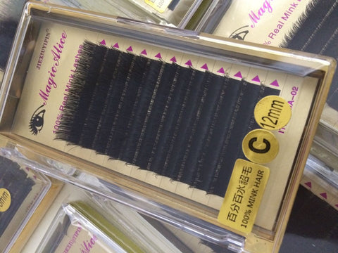 Individual Natural Mink Eyelash Extension , 100% real mink fur C Curl